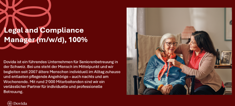 - Steuerung und Weiterentwicklung der unternehmensweiten Compliance- und Governance-Struktur inkl. Bewilligungswesen (Personalverleih & Spitex), interner Richtlinien und Standards Sicherstellung der regulatorischen Compliance über alle Unternehmensbereiche hinweg sowie Beobachtung relevanter Rechts- und Branchenentwicklungen